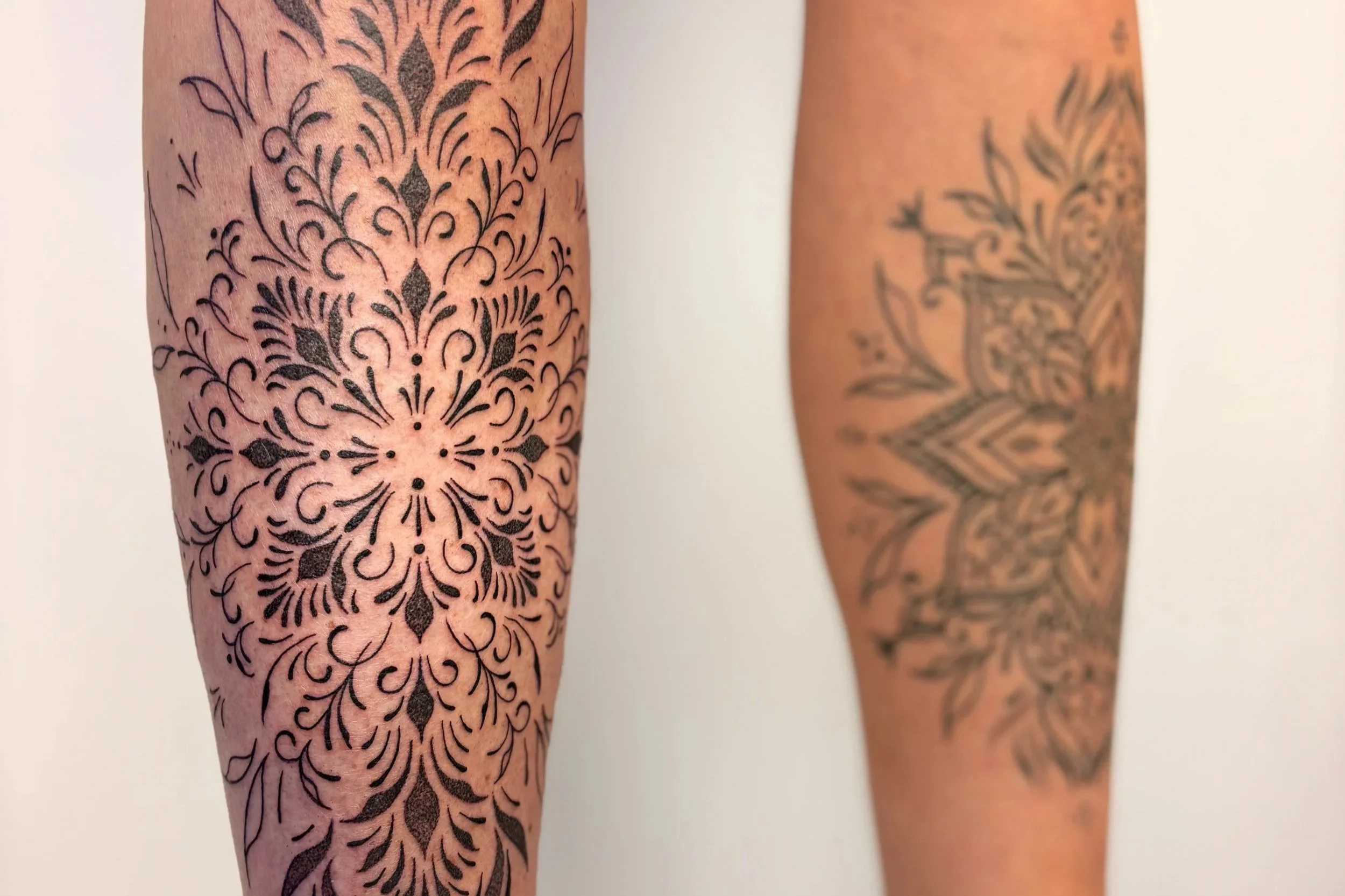 Ik specialiseeer mij in mandala, ornamental en fineline tattoos. En werk uitsluitend met zwarte inkt. Met uitzondering van de kleur rood.